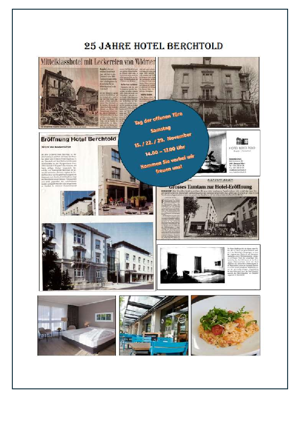 ...wir schreiben das Jahr 2000 und das Hotel Berchtold im Bahnhofsquartier öffnete am 9. September seine Türen.